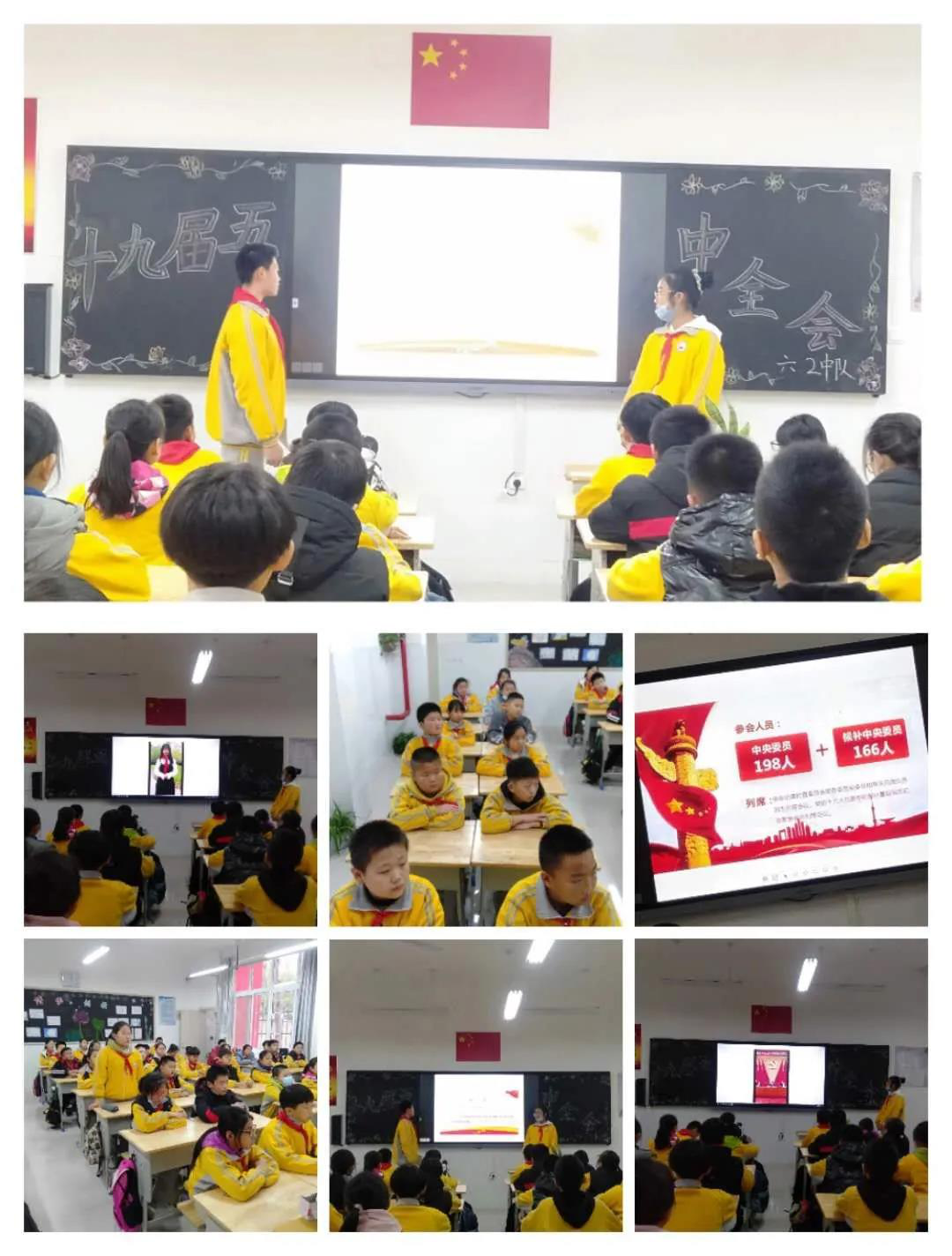 党的十九届五中全会召开后,聊城茌平区教育系统关工委在全区中小学范围内开展“童眼观全会,争做新时代好队员”学习十九届五中全会精神主题活动。各中小学关工委组织本校辅导员老师认真学习十九届五中全会精神,进一步领悟党的全会精神实质。要求站在政治的、全局的、战略的高度,深刻认识党的十九届五中全会的重大意义,切实把思想和行动统一到党中央决策部署上来,以高度的政治责任感和使命感,抓好全会精神的学习宣传和贯彻落实工作,切实把全会精神传达到每名学生中。 以“向着第二个百年奋斗目标前进”为主题,通过国旗下讲话向全校师生宣讲党的十九届五中全会精神;开展“十九届五中全会精神我知道”IEA主题队会活动;为了更好地了解“十九届五中全会”召开的意义,学生们通过网上搜集资料和父母交流等方式做足了充分的准备;十九届五中全会不仅制定国民经济和社会发展第十四个五年规划,还提出了2035年远景目标的建议。通过交流讨论,队员们想象了五年后的自己,畅想了2035年的中国。 作为新时代的少先队员,在“十九届五中全会精神”的指引下,我们可以做什么呢?学生们展开讨论,大家畅所欲言,真正体会到今天的幸福生活是党带领全国各族人民艰苦奋斗得来的,真正懂得祖国的美好明天要靠自己去创造的!童心追梦,努力奔跑,继续高举队旗跟党走;从小立志,砥砺前行,立志为祖国争光,为人民争光!