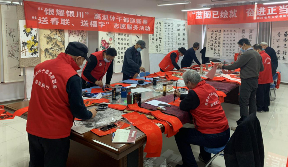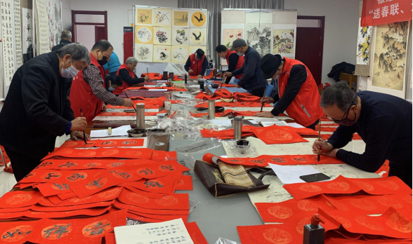 春联连人心,福字引福来。为了将新春的祝福传递给离退休干部,1月12日下午,宁夏银川市委老干部局组织银川老年大学书画志愿者开展“银耀银川·迎春送福”志愿服务活动。 无联不成春,有联春更浓。十余名老年志愿者齐聚老年大学,挥毫泼墨、笔走龙蛇,以笔抒情、以墨送福。“春归大地人间暖 福降神州喜临门”“创大业千秋昌盛 展宏图再就辉煌”等一幅幅飘着浓浓墨香,饱含浓浓年味的春联墨宝,表达对新春将临的喜悦和对广大离退休干部的美好祝愿。祝福诚可贵,平安价更高。活动现场,组织井然有序,大家严格遵守防疫规定,坚决落实防疫措施,笔墨挥洒之余,尽是平安祥和的氛围。 据了解,参加活动的志愿者年龄最低已达到花甲之年,最大的哈老已经80岁,他们热情高涨、积极主动地参加此次志愿活动,共书写600余副对联和福字,表达了对书画真挚地热爱和对广大离退休干部真诚地祝福。 此次活动以写传统春联、福字为载体,通过书画志愿者“送福”、离退休干部“接福”的形式,为广大离退休干部营造良好的春节氛围,是市委老干部局将志愿服务和用心用情做好老干部工作的有机结合,为老干部精准服务工作提供助力。 |