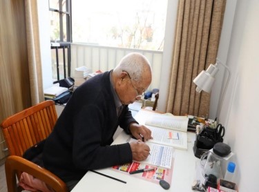 “学习是每一个党员应尽的义务。我年纪大了,记忆力不好,只有逐字逐句地反复抄写才能真正入心入脑。”云南昆明市离休老党员93岁的赵宏才10多年来每天坚持抄写党的方针政策、新思想新理论、党章党纪等,只为尽一个党员的义务,坚定永远跟党走的信念。 一个暖意融融的下午,赵宏才如往日一样,坐在整洁的书桌旁开始抄写学习。看到记者来访,赵老停下了笔墨,侃侃而谈起来。“十四五”规划、二〇三五纲领性文件的目标任务……赵宏才都信手拈来,滔滔不绝。原来,在举国上下学习党的十九届五中全会精神的浪潮中,赵老亦不甘落后,耗时1个月零3天,逐字逐条抄写十九届五中全会精神10遍,其主要精神早已铭记于心。 赵宏才每天都自主学习,规律生活。清晨6点,他准时起床,简单的活动锻炼、洗漱早餐后,8点正,便像小学生一样端端正正地坐在书桌旁开启抄写学习模式,抄累了、学倦了就“课间休息”片刻,伸展伸展手臂、活动活动筋骨,到中午11点“下课”吃午饭。正常午休2小时,13点开始接着“上课写作业”,依旧是自己布置的学习任务,直到16点才算完成一整天的伏案学习。19点的新闻联播天天必看,晚上睡觉前还要用手机刷一刷学习强国。“我的手机不是打电话的,是专门用来看学习强国的。”赵宏才打趣地说。 10多年来,赵老用抄写的方式每天坚持学习6小时,写了10多本笔记本,还有厚厚一叠信笺纸,墨水也用完近20瓶,翻开笔记本,十六大、十七大、十八大、十九大的内容比比皆是,重要的地方还用红笔抄写或标注;那些写满党章、党纪、十九届五中全会精神等等内容的信笺纸,赵老用回形针分门别类整理好,并在第一页用便笺标注清楚内容、抄写的时间以及耗时,厚厚一大沓整整齐齐地摆放在大飘窗台上,便于自己信手查阅、随时翻看。透过这些字迹工整的笔记和精细的整理收纳,足见赵老抄写学习的用心、尽心、精心。 赵宏才虽已年至耄耋,仍耳聪目明,声音洪亮,思维敏捷,他不但是儿孙们的骄傲,也是年轻人学习的榜样。每逢周末,孙子会带着小重孙来看望老人,他总能与孙子聊聊时事政治,说说国家大事,分享自己学习的心得体会;赵老是一名南下离休老干部,也是昆明市企管办的管理服务对象,每次工作人员来探视他,说起自己的学习成果,总是口若悬河,常常让在场的年轻人感到汗颜,立志要好好学习。 在赵老看来,抄写学习不仅修身养性、坚定信念,也是保持身心健康的好办法。“我现在正在抄写《求实》杂志上反对形式主义的一篇好文,明年我要再抄15遍新党章,为建党100周年献礼。”老人坚毅而笃定地说。 |