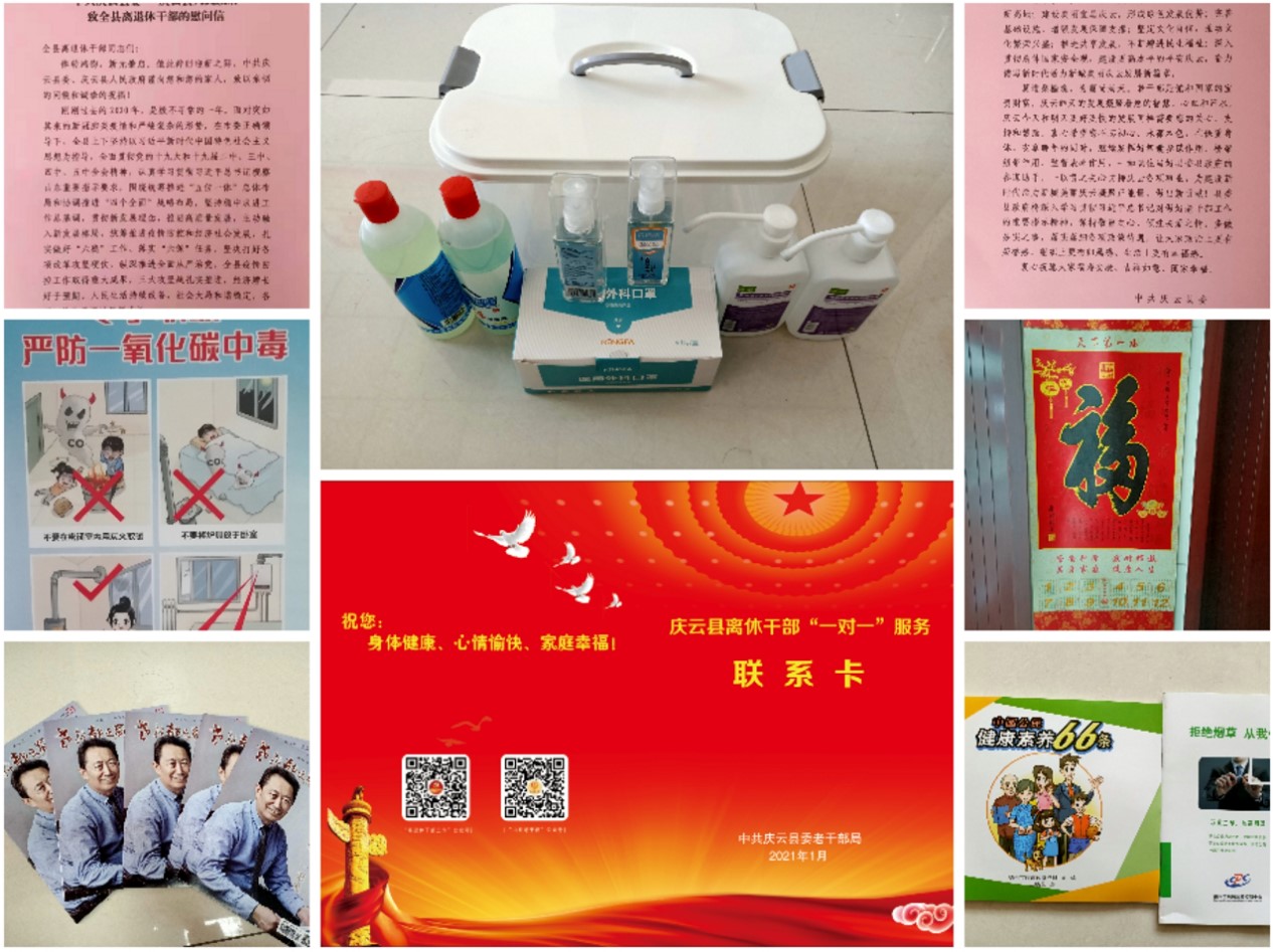 广大老干部是党和国家的宝贵财富。为深入贯彻落实习近平总书记关于老干部工作系列重要论述和批示指示精神,结合省委、市委有关安排部署和新冠肺炎疫情联防联控要求,近日,德州庆云县主动转变工作思路,结合疫情防控关键时期形势需要,改进老干部走访慰问方式方法,变以往春节前集中走访为“一对一、点对点”精准走访,切实避免因人员集中带来的疫情防控风险。 同时,为了让老同志在疫情防控的特殊时期,更好感受到党委政府的关心关怀,让老同志过一个健康、安全、文明、充实的春节,县委老干部局牵头对接县委办公室、县委政法委、县政府办公室、卫健局、疾控中心、应急管理局等7部门,面向全县离休干部和部分县级退休干部联合开展了以“送慰问、送爱心、送健康、送安全、送服务”为主要内容的“十个一”春节暖心行动,即:各服务单位明确一名班子成员专人负责;坚决落实一系列疫情防控措施;为老同志送上一封县委县政府慰问信;一份春节慰问品;一箱疫情防护用品;一期《老干部之家》杂志;一套《健康素养66条》《控烟禁烟科普手册》;一卷“崇尚科学、反对邪教”新年年历;一幅冬季安全取暖宣传挂图;一张离休干部“一对一”联系服务卡,在简化走访形式的同时,通过务实暖心的举措,为老同志送上新春祝福,向老同志致以崇高敬意,向长期以来老同志对全县发展的关注支持表示感谢,努力让老同志在疫情防控的寒冬有更多幸福感获得感安全感。 |