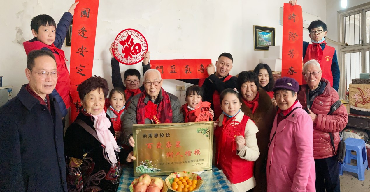 2021年是中国共产党成立100周年,为进一步弘扬红色精神,浙江温岭市委老干部局开展了形式多样的建党百年庆祝活动,着力组织引导广大老干部、老党员“守初心、践使命”,为建设美丽温岭、活力温岭、幸福温岭作贡献。 1月25日上午,俞明德工作室“五老”与横湖小学的少先队员们来到百岁老人余用惠家里,向这位老党员拜早年。这是一场“00后”百岁老党员、“90后”耄耋老党员与“10后”少先队员的邂逅,是他们共同致敬党的100岁生日的一次相聚。 余用惠,出生于1921年,先后担任台州财经学校、温岭中学、温岭师范学校等学校副校长近30年,曾当选温岭第2至8届人大代表,多次被评为省、市先进工作者、优秀教师、优秀党员。退休后,帮办民办职高,投身关工委工作,曾被评为关心下一代工作先进个人。他的事迹被《浙江老年报》整版刊登。 俞明德作为新中国第一批少先队辅导员,今年已经90岁了,但仍然活跃在温岭的少先队辅导事业上。来到百岁老党员余用惠家里,双方回忆往昔,畅谈建党百年的感想。余用惠虽然已经百岁,但他的声音依旧洪亮,思路依旧清晰:“正是有伟大的中国共产党的英明领导,才有今日幸福的生活,我们要永远爱党爱祖国。”接着,少先队员给余用惠爷爷佩戴光荣花,献上窗花、福字剪纸和春联,送上荣誉称号,还将亲自写的春联贴在了余用惠家门口,祝福他健康长寿,新年快乐。余用惠非常开心,鼓励少先队员们好好学习,做一个德智体美劳全面发展的人。俞明德工作室和横湖小学校长陈灵世送上慰问品、礼盒以及诚挚的新春祝福。 今年是中国共产党成立100周年,和党同龄的余用惠说出了自己的愿望:“希望我能够活到120岁,见证我们国家在党的领导下创造的更多辉煌!” |