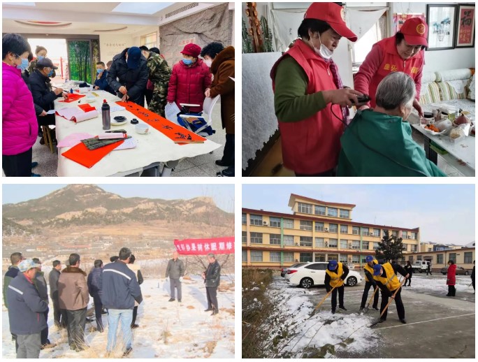 战疫情 送祝福”2021年迎春笔会,活动现场,老干部们尽情挥毫泼墨,共完成春联、福字500多副。荣成、文登、高区、经区、临港区采用“小规模写春联,大范围送祝福”的形式,将老干部亲手书写的春联送给社会群众特别是因疫情选择原地过年的居民。面对外防输入、内防反弹的疫情防控压力,荣成老干部积极助力全员核酸检测预先登记工作,100多名老干部网格协管员、楼长逐户帮助居民做好登记并发放疫情明白纸,宣传疫情防控知识。乳山市老干部通过发放科普手册、举办科普大讲堂等,全面普及绿色发展、防灾减灾等知识,帮助农村群众养成科学文明的生产生活方式。此外,送戏下乡、为老人理发、为居民磨菜刀、扫雪清障等活动也在火热开展中,老干部们用自己的实际行动为营造安定祥和、喜气洋洋的节日氛围贡献力量。 |