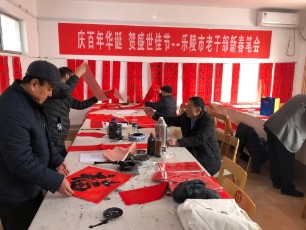 为庆祝建党一百周年,在新春佳节到来之际,2月3日,德州乐陵市委老干部局组织市妙笔丹青老干部书画协会志愿者义务为社区群众手写春联、“福”字。