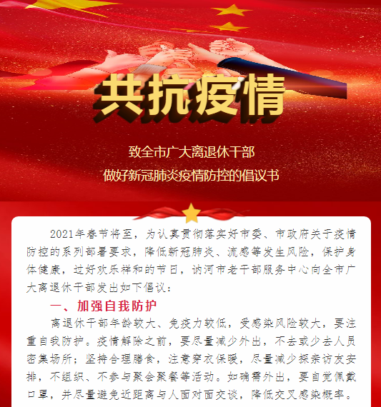 为落实黑龙江省委、齐齐哈尔市委和讷河市委抗疫防控要求,讷河市老干部服务中心第一时间作出响应,明确责任,多措并举,动员鼓励全市离退休干部为坚决打赢疫情防控保卫战作贡献。 举旗稳军心,宅家亦温馨 面对当前严峻的疫情防控形势,讷河市老干部服务中心通过公众号和微信工作群及时发布《致全市离退休干部和老干部工作者倡议书》,大力推送离退休干部工作和防疫健康常识,号召全市离退休干部以高度的思想自觉、政治自觉、行动自觉,充分发挥全市离退休干部党组织战斗堡垒和老党员先锋模范作用,提高政治站位,增强大局意识,遵守政治纪律,坚定必胜信心,带头科学防控。市老年大学及时发出通知,号召全体学员居家防疫,做到非必要不出行,充分利用网络教学丰富课业知识。广大老同志积极响应号召,纷纷表示,要认真落实讷河市委防疫要求,发挥自身优势作用,为当前防疫工作作出自己的贡献。 首战我前行,关爱暖人心 自疫情防控工作开展以来,多名老干部志愿者自愿担任党建综合网格中的党员中心户,主动联系所在社区党组织,协助加强小区疫情防控。老同志受党教育多年,对党无限忠诚,纷纷应战,他们上医疗前线,下基层一线,展现出对党、对人民深厚的“银发情感”。有些老干部编排顺口溜、创作诗书画作品等方式参与“战疫”。市卫健局老医生、老专家纷纷请缨投入“战疫”。还有一些老同志主动请缨到社区帮助宣传抗疫要求,宣传防疫知识,引导大家正确对待当前疫情。 “廉颇”尚能战,夕阳有温情 对面当前疫情态势,广大老同志积极响应号召,不顾年事已高、身体疲劳,继续发挥着光和热,传递讷河正能量。市关工委向全市少年儿童发出倡议,把爱心汇聚到疫情防控工作中,把对家乡祖国的信心凝聚到防控中,把积极向上的正能量聚集到抗疫中。关工委“五老”主动申请当志愿者,帮助社区做好防疫工作,守护居民平安,用行动诠释了一名老党员的担当与责任。 |