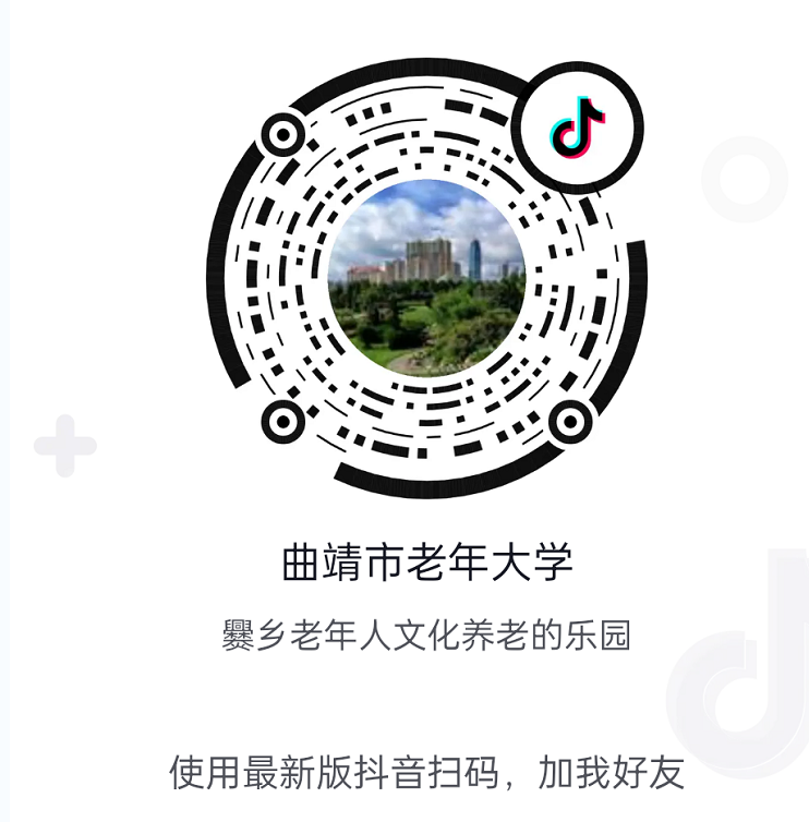 为进一步发挥新媒体宣传优势,拓宽宣传平台,2月24日,云南“曲靖市老年大学”官方抖音号正式上线。 作为曲靖市老年大学在移动互联网领域的又一宣传平台,“曲靖市老年大学”官方抖音号将以短视频的方式记录和展示学校的教师学员风采、专业特色、校园故事、办学经验等内容。通过多媒体渠道,持续擦亮曲靖市老年大学宣传品牌,为深入推动曲靖老年教育高质量发展营造浓厚氛围。 真诚期待您的关注: 方法一:在抖音App中直接搜索“曲靖市老年大学”并点击关注。 方法二:利用抖音“扫一扫”功能扫描“曲靖市老年大学”官方抖音号二维码并点击关注。 |
