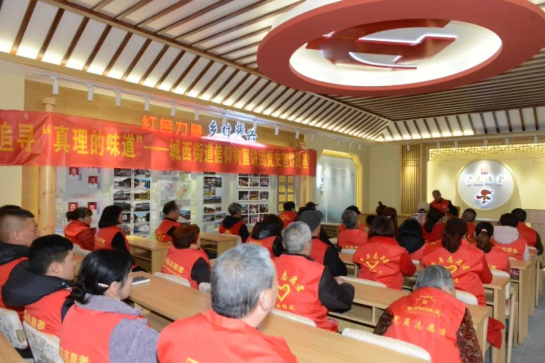 3月9日上午,“追寻‘真理的味道’”浙江义乌市党史学习教育千场宣讲活动在城西街道分水塘村启动。来自镇街、机关、企事业单位和农村一线的近百名党员及青年干部齐聚一堂,深入学习党史,深刻体会共产党人的初心使命,做马克思主义的坚定信仰者、自觉传播者、忠实践行者。 活动现场,各宣讲队代表庄重地接过旗帜。大家表示,将认真学习党史、精心组织备课,特别是要认真把习近平总书记讲述的几个“义乌故事”与义乌的基层实际结合好,创新方法手段,用群众喜闻乐见的方式和语言,把党史革命史讲得更深、更透、更生动,呼吁更多群众学史明理、学史增信、学史崇德、学史力行,让党史学习教育活动的触角延伸到寻常百姓家。 大家一起聆听来自市委党校、商城集团团委等宣讲团成员上微型党课,讲述陈望道翻译《共产党宣言》中文全译本的事迹,传播“信仰的味道”。 “追寻‘真理的味道’”市级宣讲团,主要力量为老干部、劳模工匠、青年、妇女、老师、各镇街等全市各类宣讲队;并通过“进社区、进学校、进企业、进农村、进机关、进网络”宣讲,实现党政机关、企事业单位党史宣讲全覆盖。预计宣讲活动将超过3000场次,让每一位党员都能接受一场以上党史宣传教育。 在此次宣讲活动中,年逾九旬的离休干部朱光代表老干部宣讲团,郑重接过了旗帜,他离休后积极投身社区创建、创卫、交通执勤、治安巡逻、五水共治等活动中,并到军营、学校、社区、企业宣讲老兵事迹,讲述自身的抗战经历,进行爱国主义宣传,事迹多次被义乌电视台、商贸频道、公共文艺频道、金华电视台等媒体单位播出。2016年被评为金华市最美老干部,2020年被评为浙江省“最美助力之星”。 首场专题宣讲活动在分水塘村文化礼堂开展,“信仰树”宣讲团讲师老党员陈祥有担任主讲,为分水塘村近40名村两委干部、党员、预备党员等分享了一堂声情并茂的党课。陈祥有用通俗易懂的语言,讲述了一百年前中国共产党成立的背景。 |