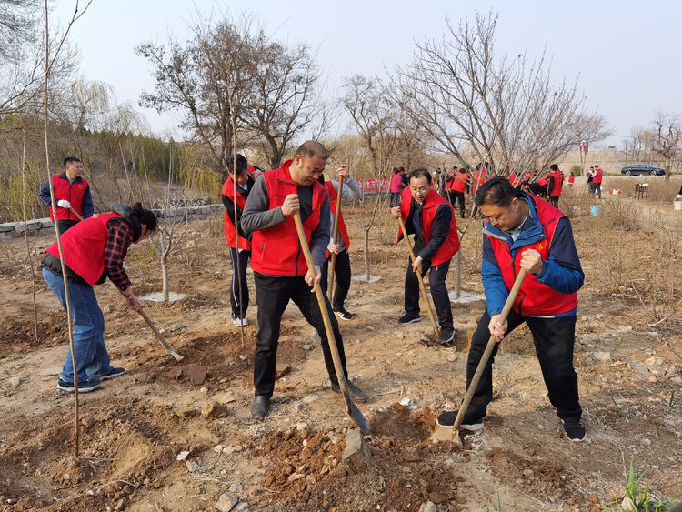 阳春三月,万物复苏,正是种植树木的好季节。2021年3月12日是我国第43个植树节,当天,济南章丘区委老干部局来到朱家峪开展义务植树活动,用实际行动为美丽章丘再添新绿。 植树过程中,大家充分发扬不怕苦、不怕累的精神,有的挥锹挖坑,有的平整土埂,有的提水浇灌,热情高涨、干劲十足,到处都是身穿红马甲义务植树的身影。 经过一个多小时的辛勤劳动,一排排新绿新植迎风而立,在和煦的微风中萌发盎然生机。大家看着刚栽下去的树苗,期待着它们茁壮成长。 栽下一棵树,植下一片绿。通过此次活动,不仅增强了大家的环保责任意识,同时也树立了“植绿、爱绿、护绿”的生态文明理念,培养了同志们吃苦耐劳的精神,增强了广大党员干部的党性修养,进一步加强了全局干部职工的凝聚力和战斗力。参加活动的志愿者纷纷表示,以后要多多参与这种植树活动,多为辖区环境增添一份绿意,贡献一份力量。