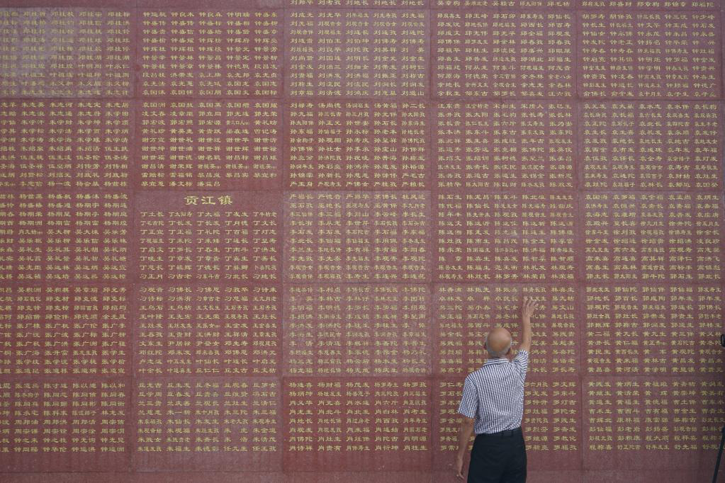 于都河畔,月亮攀上了故乡的屋檐。 江水起伏光点闪烁,像是一颗颗跳动的归心。 80多年前,你告别家乡,踏上征途。中央红军8.6万余人的长征队伍,仅剩3万多人。无名烈士,难以计数。 你的名字,化作散落的红星。 一名老红军后代在于都烈士纪念园英名墙上寻找亲人的名字(资料照片)。新华社记者 赖星 摄 人们一次次沿着你的足迹,寻找你的名字;人们一遍遍走进历史深处,重温你的故事。 你的故事,成为一个民族永远的记忆。 你的精神,铸就一个民族信仰的丰碑。 你的名字,是散落的红星 “始生三月而加名”,“男子二十冠而字”。对于中国人而言,名字是一个人人生的开始,也是中华民族生生不息的见证。 在中央红军长征集结出发地——江西于都,英名墙上16356位烈士的名字依籍贯整齐排列,这些金色的名字在红褐色大理石上熠熠生辉,而据碑文所述:“犹有数以万计之烈士,姓名无考,故有留白,喻其圣洁。” 红色,是于都最鲜艳的底色;长征,是于都最动人的记忆。其中,既有国情,也含家思。 苏区时期全县6.8万余人参加红军,几乎每5人中就有1个参加红军;长征路上,平均每公里就有一名于都籍烈士倒下。 “然而,在长征途中倒下的一万余名于都籍烈士中,只有少数人的事迹被记载流传,另有6643人北上无音讯,而绝大多数连名字都没留下。”这样的对比,让于都县革命烈士纪念馆馆长黄发斌深感痛心。 英雄走时,虽然无名;英雄走后,不该寂寞。为寻访烈士英名,补全英烈事迹,2019年以来,于都县革命烈士纪念馆寻访工作组队员两次外出寻访,行程超过一万公里。 一路上,寻找到的每一条线索、核对过的每一组数字、英烈后代的每一次回忆都让他们感受到,越是走进历史深处,越是发觉历史的沉重。 在贵州黄平县,于都县革命烈士纪念馆馆员寻访到一处无名烈士墓,墓中安葬着一位于都籍红军战士(资料照片)。新华社发(于都县革命烈士纪念馆供图) 广西,全州红军长征湘江战役纪念园。他们看到一处开阔的石头阵,每块石头下面都安葬着无名烈士的遗骸,与周围的一草一木、一山一石融为一体。 贵州,遵义红军烈士陵园。英名墙上镌刻着1338个英烈的名字,“90后”队员蔡铭对照于都籍烈士名录一个一个进行核对,看着这些和自己年纪一般大就牺牲的战士,他的心被狠狠地刺痛了。 身处广阔无垠的若尔盖大草原,一股浓得化不开的情感湍流而来。黄发斌情不自禁地哼唱起《长征组歌》,“雪皑皑,野茫茫,高原寒,炊断粮。红军都是钢铁汉,千锤百炼不怕难……” “对于英烈来说,留不留名或许并不重要。但作为后辈,我们有责任去寻找,这既是对烈士英灵的告慰,也是对家国记忆的延续。”截至目前,黄发斌等人已找到7名散落在外的于都籍英烈,另有280名英烈的相关信息有待进一步核实。 腊子口战役纪念馆工作人员向于都县革命烈士纪念馆馆长黄发斌(右)等人献上哈达(资料照片)。新华社发(于都县革命烈士纪念馆供图) 你的名字,是不朽的丰碑 如果以人数算,于都县革命烈士纪念馆找到的名字并不多,但每一个名字都弥足珍贵,字字千钧,蘸满了家国情怀。 2019年7月,河北省石家庄,烈日灼人。 寻访组队员赖金玉风尘仆仆地赶到华北军区烈士陵园。得知她的来意后,陵园相关人员深受感动,并将江西籍烈士的相关资料交予她。 赖金玉从中找到了杨承德、邓典龙、钟奇等三位英烈的名字。隔着八十余年的光阴,她小心翼翼地打开了一段尘封已久的往事。 在华北军区烈士陵园,于都县革命烈士纪念馆馆员寻找到的邓典龙烈士墓(资料照片)。新华社发(于都县革命烈士纪念馆供图) “他们长征到达陕北后,都在抗战中牺牲,但家乡的人们并不知晓他们的经历,更不了解他们的事迹。”赖金玉回到于都后,便着手联系当地电视台为烈士寻亲。 一年后,赖金玉接到一个来自唐山的电话。电话那头的大姐说,自己的父亲赖富和钟奇、邓典龙是战友,他们的名字均在父亲的回忆录上出现过。 赖金玉等人循着这一线索,逐渐确定了钟奇、邓典龙等人于都籍的身份,他们的相关事迹也愈加清晰。 于都县革命烈士纪念馆馆员寻找到的钟奇烈士资料(资料照片)。新华社发(于都县革命烈士纪念馆供图) “河北之行的收获,给了我们很大信心。”2020年10月,黄发斌带队沿长征沿线进行第二次寻访。 在贵州黄平县,他们亲历了一场阔别八十余年的相逢。 “于都老家来人了。”见到黄发斌等人,失散红军钟兴明(又名钟元享)的子女们热泪盈眶。 于都县革命烈士纪念馆馆员在贵州省黄平县采访于都籍失散红军钟兴明(又名钟元享)的女婿张礼平(左三)(资料照片)。新华社发(于都县革命烈士纪念馆供图) 钟兴明是于都靖石乡人,在长征途中因伤掉队留在黄平县安家。他曾告诉子女,在黄平牺牲的红军战士中有很多是于都老乡。找到这些战友的遗骸并将其安葬,是老人生前未了的心愿。 老人去世后,当地村民在修路时才偶然发现其中一具红军烈士的遗骸。据党史部门考证,1934年12月,这名于都籍战士被在此设伏的敌人杀害。 黄发斌一行人随钟兴明的女婿张礼平来到这位无名英烈的墓前。墓碑无言,像一双深沉的眼睛凝视着站在它面前的人。 在贵州黄平县,于都籍失散红军钟兴明(又名钟元享)的女婿张礼平在于都县革命烈士纪念馆馆员带来的旗帜上签名留念(资料照片)。新华社发(于都县革命烈士纪念馆供图) 众人深