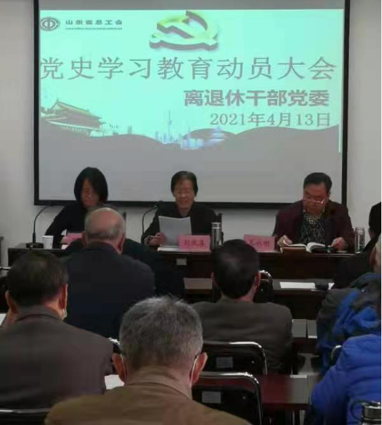 4月13日上午,山东省总工会离退休干部党委召开党员大会,对深入开展离退休党员党史学习教育活动进行动员部署。 高唱《跟着共产党走》 大会在与会党员高唱《跟着共产党走》歌声中开始。会上,着重学习了习近平总书记在党史学习教育动员大会上的重要讲话精神,传达了省总工会党组书记刘贵堂在省总工会党史学习教育动员大会上的讲话及省总党史学习教育活动实施方案,紧密结合老干部党员实际,对党史学习教育活动进行了具体的安排部署。 老党员聚精会神听会 老党员们一致表示,要以习总书记的重要讲话精神为指导,积极投入到党史学习教育活动中来,充分发挥老干部的独特优势,把党的故事讲好讲活,用党的光荣传统和优良作风坚定信念、凝聚力量,为实现中华民族伟大复兴的中国梦作出积极贡献。 |