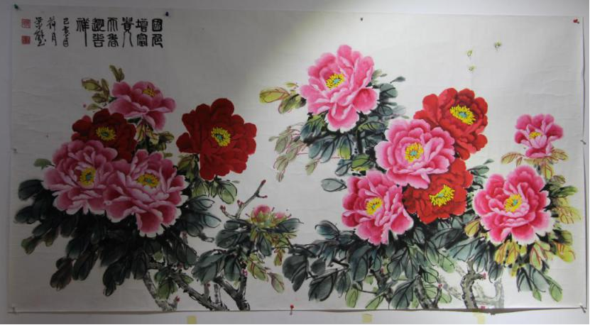 4月13日,烟台蓬莱区老年大学学员周荣璧在区文化馆三楼举办书画展,区老年大学、文化馆、书法家协会、美术家协会、老年大学部分学员及书法绘画爱好者100多人参加开幕式。 周荣璧(左二) 周荣璧,1942年出生,1965年入党,1997年从长岛县电子厂技术厂长岗位上退休,2007年报名参加蓬莱市老年大学书法绘画班学习,现为齐鲁书画研究院一级画师、烟台市书法家协会会员。他从66岁开始启蒙书法绘画,创造了一批作品,多次参展并获奖。其中《嫦娥迎神九》在全国离退休干部“同心共筑中国梦”书画大赛全年总决赛评比中荣获三等奖。 举办书画展的缘由,来自于周荣璧对党的深厚感情。在党的培养下,他从一名农村孩子成长为一名技术厂长。一路成长,让他对党满怀感恩。今年是建党100周年,恰逢是他耄耋之年。作为一名老党员,他萌发了举办书画作品展,向建党100周年献礼的想法。 他的意愿,得到区老年大学大力支持,派人联系文化馆落实场地、协调有关人员参加等。仅用了两周时间,书法、花鸟、人物、篆刻等100多幅作品布展完成,书画展如期举办。 书画展,吸引不少老年人前来观看。老年大学书法班教师方继愉是周荣璧的书法启蒙教师,为这次书画展忙前忙后投入很多精力,今天也到场为学生鼓劲加油。他说:“展出的作品,既有工笔,也有人物、篆刻等,而且周荣璧还自己装裱画作。看到这些,挺为他自豪的。” 王世武,是周荣璧就读老年大学时书法班同学。他表示:学员举办个人书画展,在区老年大学还是首次,这对学员们是鼓励也是鼓舞。今天,有不少老年大学学员赶过来,观看探讨交流学习。 在现场,区书法家协会、美术家协会的相关负责人边看边点评,对参展作品给予认可和好评。观众或用心观看或悄声交流,或用手机拍摄发到微信圈与亲朋好友实时分享。 “今年,围绕‘建党百年’主题,开展系列庆祝活动。将动员更多的老同志以多种形式参与到活动中,营造浓厚的喜庆氛围。”区老年大学负责人说。