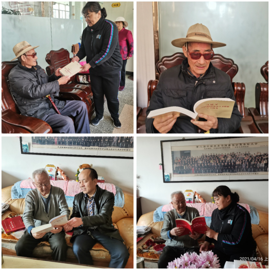 为确保离退休老党员紧跟党史学习教育步伐不落队,甘肃定西市陇西县成立“送学上门”志愿服务队,为行动不便、年老体弱的老党员送去党史学习材料。 志愿服务队走进离退休老党员家中,为他们送去《论中国共产党历史》《毛泽东、邓小平、江泽民、胡锦涛关于中国共产党历史论述摘编》等学习材料以及笔和笔记本等学习用品,详细询问老党员的身体和生活状况,向老党员详细介绍离退休干部党工委党史学习教育部署和要求。志愿者们认真聆听老党员讲述自己入党在党的心路历程,交流党史学习教育的心得体会。老党员们手捧学习书籍非常高兴,纷纷表示作为老党员,要带头学好党史,积极发挥历史“见证人”、党史“亲历者”的政治优势、经验优势,在党史学习教育中走在前,作表率,传承红色基因,发挥银发力量,为庆祝建党百年华诞加油鼓劲。 |