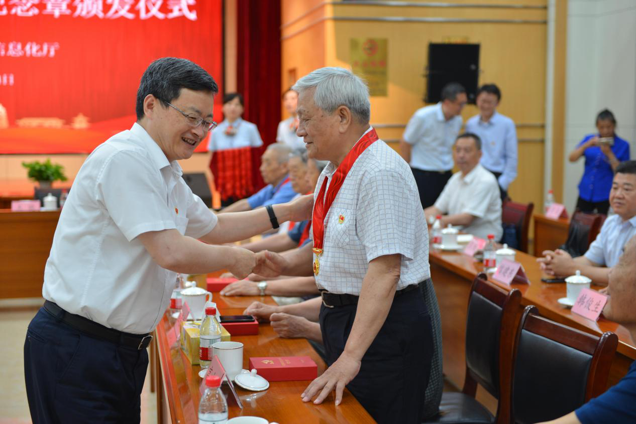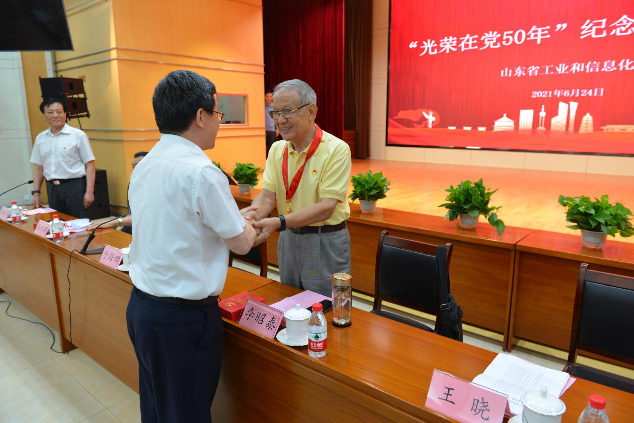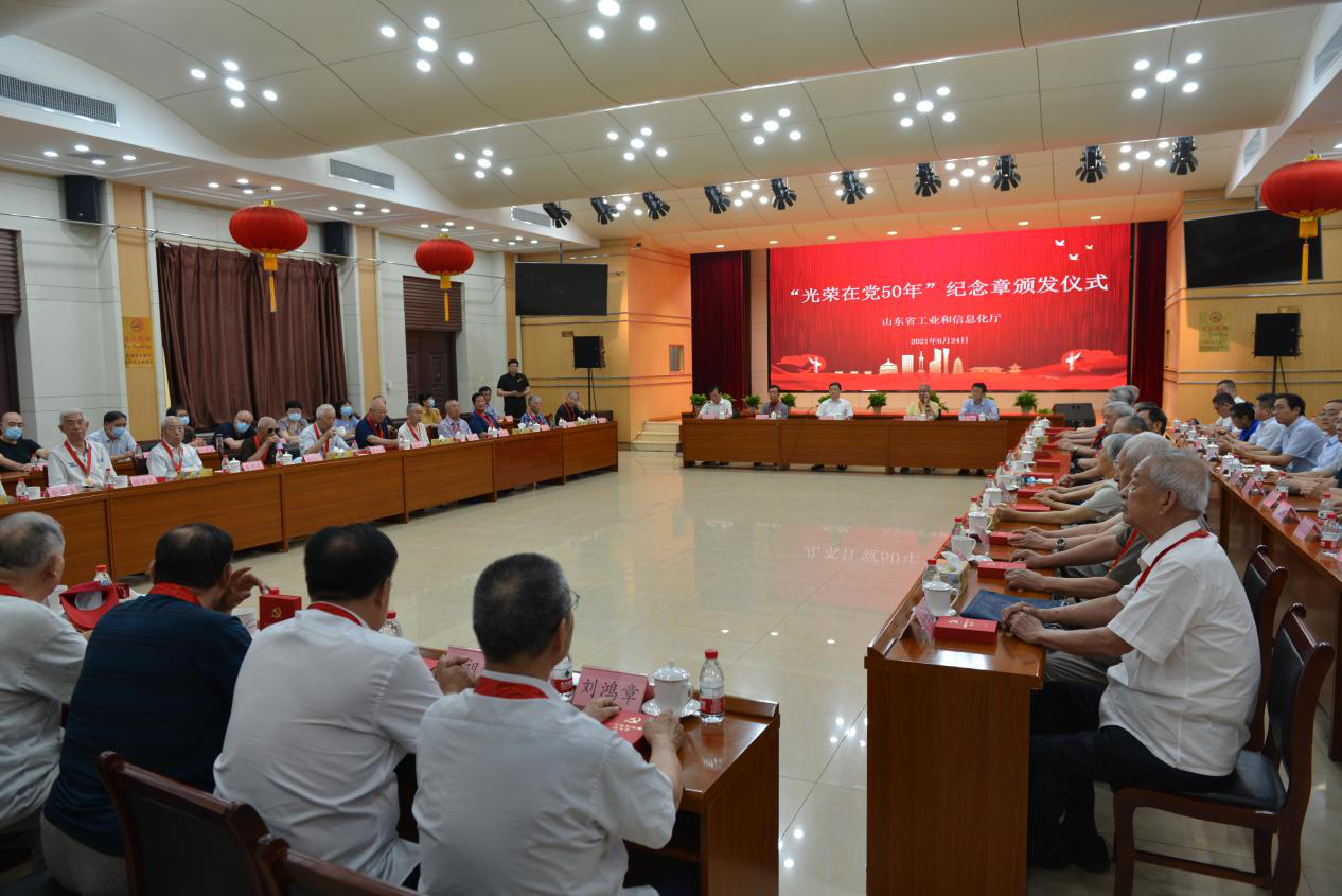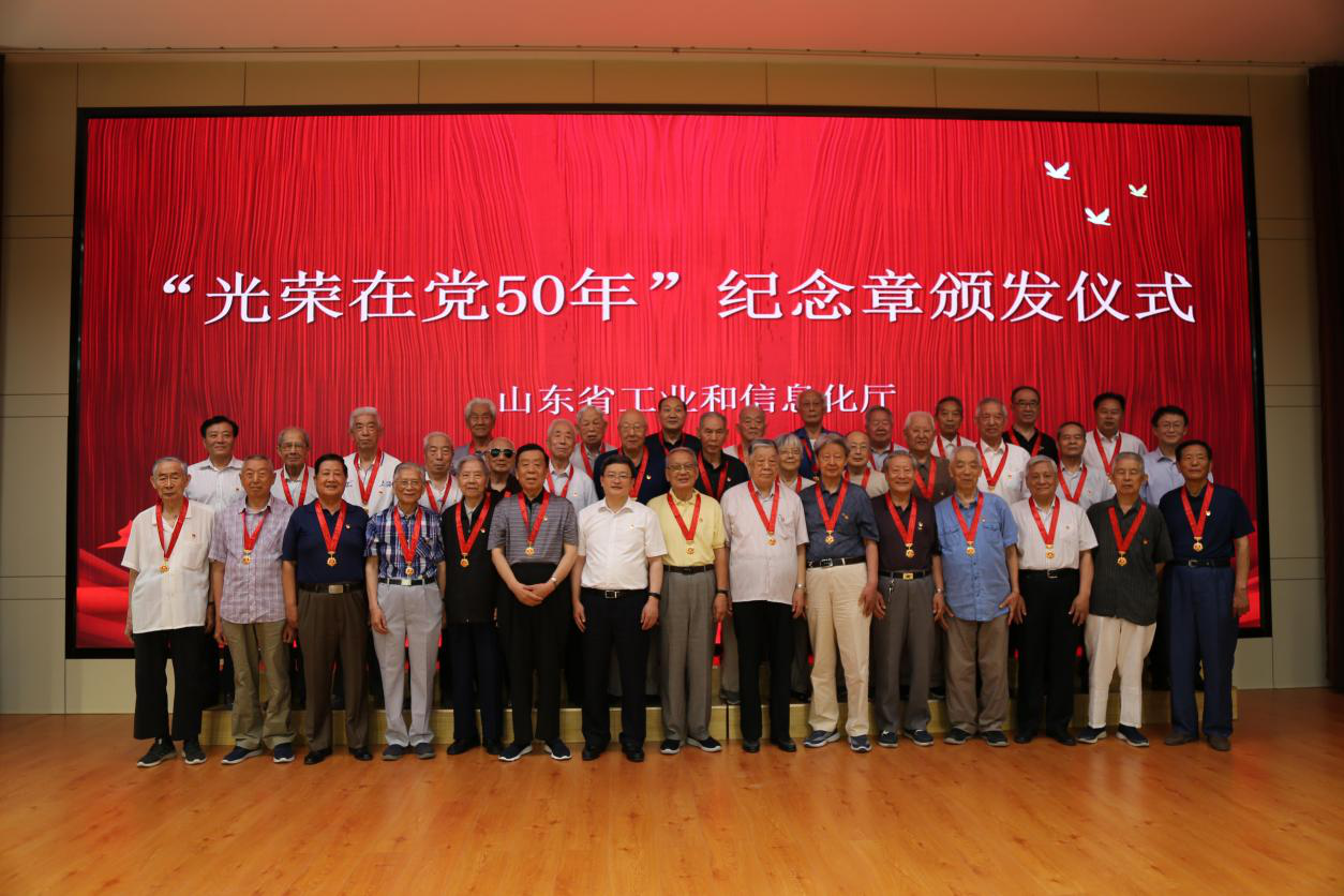 6月24日下午,山东省工业和信息化厅隆重举行工信系统“光荣在党50年”纪念章颁发仪式,获颁纪念章的老党员代表,山东省工业和信息化厅党组书记、厅长于海田,工信系统各职能部门工作人员等出席了仪式。 仪式一开始,于海田向党龄超过50年、一贯表现良好的老党员代表逐一颁发“光荣在党50年”纪念章,并亲手把纪念章挂到老党员的胸前,对他们为党和国家、为工信系统各项事业所做的贡献表示衷心的感谢。 于海田代表厅党组向获颁纪念章的老党员们致以最崇高的敬意并发表讲话。 于海田指出,近年来,厅党组以提高老干部的生命生活质量为主要工作内容,以服务好离退休干部为宗旨,牢牢把握新时代老干部工作定位,努力提升“精准服务”水平,扎实做好离退休干部服务工作,在推进文化养老,提升离退休老干部幸福指数上作出了突出贡献。下一步,厅党组将一如既往地关心老党员的政治生活、家庭生活、身体健康,用心用情为老干部、老党员做好服务保障,帮助他们解决困难和问题,让他们共享改革发展成果,共享幸福晚年。 于海田表示,党的百年历史取得的伟大成就,与每一位共产党人的团结奋斗密不可分,山东工信系统取得的每一项成绩,同样倾注了各位老党员的智慧心血。希望老党员们继续发挥余热,紧紧围绕山东工信系统发展改革等领域的重点难点问题,积极献良策、建真言、出实招,并充分利用自身优势,发挥示范传承作用,用亲身经历的好故事感染更多的年轻党员,让红色基因在“传帮带”中发扬光大。 于海田要求,广大党员要坚定理想信念、绝对忠诚于党,要坚持率先垂范、引领时代潮流,要提振精神状态、脚踏实地奋斗。为开创新时代制造强省和数字强省建设新局面而努力奋斗,奋力谱写中国特色社会主义现代化的新篇章。 仪式上,山东省工业和信息化厅离退休干部服务中心三处四支部书记王忠本代表领到纪念章的老党员发言。 王忠本表示,领到这枚纪念章,他感到无比光荣和自豪。他感恩党的培养和教育,感恩为离退休老同志服务的同志们,并表示要不忘初心,牢记使命,活到老、学到老,坚定信仰,永不褪色,永不掉队,让自己的人生对得起这枚纪念章。 仪式进行到最后,于海田与现场所有荣获纪念章的老党员代表登台合影留念。 |