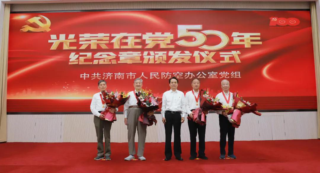 今年是中国共产党成立100周年,党中央决定首次颁发“光荣在党50年”纪念章,是对50载“初心如磐”老党员的充分肯定,也是对老党员的殷切关怀和礼敬尊崇。在建党100周年来临之际,济南市各级各单位按照上级部署要求,采取走访慰问、召开座谈会、举行“纪念章”颁发仪式、开展主题党日活动、为老党员过“政治生日”等多种形式,为符合条件的老党员颁发“光荣在党50年”纪念章,褒扬他们为党的事业作出的突出贡献,将党中央的关怀传达到每一位老党员。 济南市人大: 6月25日,济南市人大常委会及机关举行“光荣在党50年”纪念章颁发仪式暨庆祝中国共产党成立100周年演讲朗诵会。市人大常委会党组书记、主任殷鲁谦出席活动并讲话,为17位党员代表颁发了“光荣在党50年”纪念章,并向获得纪念章的老同志表示祝贺。 老党员们表示,将珍惜光荣历史,继续为推动党和国家事业发展凝聚力量、发光发热,继续关心支持市人大的各项工作,把忠诚故事讲述好、把丰富经验介绍好、把光荣传统传授好,多建言献策、指点方法,多言传身教、赓续精神血脉、激发奋进动力。 济南市政协: 6月25日,济南市政协举办“光荣在党50年”纪念章颁发仪式。市政协党组书记、主席雷杰,市委常委、统战部部长、市政协党组副书记王拥华出席活动,为14位荣获纪念章的党员代表颁发了纪念章。 雷杰代表市政协党组向荣获纪念章的党员表示热烈祝贺和崇高敬意,向老党员们为全市经济社会发展和政协事业作出的贡献表示衷心感谢。老党员们表示,将珍惜光荣历史,永葆政治本色,继续发挥余热,一如既往关心支持济南发展和政协工作,为助推新时代人民政协事业发展贡献更多智慧和力量。 济南市人民防空办公室: 6月27日,济南市人防办举行“光荣在党50年”纪念章颁发仪式。获得纪念章的老党员在交流中表达了对党的热爱和感激、对人防事业的期望和祝福,表示今后要更加坚定对共产主义的信仰,竭尽所能地为党做一些力所能及的工作,感党恩、听党话,永远跟党走。 市农业农村局: 近日,济南市农业农村局组成14个慰问组,分别走访慰问了94名老党员、生活困难党员,烈士和因公殉职党员干部家属,为获得“光荣在党50年”纪念章的72名老党员颁发了纪念章,同时送去慰问品,将党组织的温暖和关怀送到老党员和同志们心中。 济南市仲裁办: 6月18日,济南市仲裁办举办“光荣在党50年”纪念章颁发仪式暨退休干部座谈会。现场为6名党龄50年以上的老党员颁发“光荣在党50年”纪念章,充分肯定老党员、老同志在社会主义建设事业中做出积极贡献。 6名老党员分享了入党故事与感言,并鼓舞年轻党员要传承好红色基因,接过时代的“接力棒”,扛起新时代仲裁人的责任使命,以昂扬的姿态接续奋斗,为建设新时代现代化强省会做出仲裁贡献,以优异成绩向建党100周年献礼! 济南市商务局: 6月25日,济南市商务局隆重举行“光荣在党50年”纪念章颁发仪式暨离退休老党员座谈会,为7名老党员代表颁发了“光荣在党50年”纪念章,向他们致以衷心祝贺和崇高敬意。 老同志们激动万分,纷纷讲述自己的入党经历,为党工作的过程,谈对党的感受,表示要更加坚定共产主义信念,不忘初心、牢记使命,发挥好余热,继续关心支持商务事业,永远听党话,永远跟党走,永远做一名合格共产党员。 历下区: 6月25日,历下区组织部分离退休干部开展“行走中的党课”主题党日活动。向老同志们通报了历下区经济社会发展情况和取得的突出成绩,为老同志颁发了“政治生日”贺卡,并向他们致以诚挚的祝福和崇高的敬意。 市中区: 市中区共有4201名老党员获得“光荣在党50年”纪念章,通过召开党员大会、老党员座谈会、走访慰问等方式进行颁发。 市中区委书记韩永军,区委常委、组织部部长顾朝霞分别到七里山街道、二七新村街道参加“光荣在党50年”纪念章颁发仪式,为老党员代表颁发纪念章和慰问金,向他们献上鲜花,代表区委、区政府向所有获得纪念章的老党员表示热烈祝贺和崇高敬意。对他们入党以来,为党、为人民所做的贡献表示衷心感谢,希望他们珍惜光荣历史、永葆政治本色,弘扬党的光荣传统和优良作风,继续为党的事业增光添彩。 一代人有一代人的长征,一代人有一代人的使命。“光荣在党50年”纪念章的颁发,是一种致敬,更是一种激励,激励着年轻党员铭记老党员历史功绩,弘扬老一辈优良传统,追寻奋斗足迹,学习革命精神,汇聚起奋勇前进的磅礴力量。 天桥区: 6月28日,天桥区委老干部局开展走访慰问活动,为局机关符合条件的老同志颁发“光荣在党50年”纪念章,向他们转达党组织关怀,致以崇高敬意和诚挚问候。 济阳区: 近日,济阳区政协集中走访慰问了党龄满50年的老党员,并为他们颁发“光荣在党50年”纪念章。每到一处,都详细询问老党员的身体状况及生活情况,嘱咐他们保重身体,在党旗下为他们戴上“光荣在党50年”纪念章并送上鲜花,感谢他为党和人民作出的贡献。 老党员们纷纷表示,“光荣在党50年”纪念章充分体现了党中央对老党员的关怀和褒扬,增强了老党员的荣誉感、归属感、使命感,将继续发扬革命传统和优良作风,发挥好余热,讲好党的故事,为济阳区经济社会发展贡献自己的力量。 章丘区: 6月25日,章丘区司法局举行“光荣在党50年”纪念章颁发仪式暨老年支部主题党日活