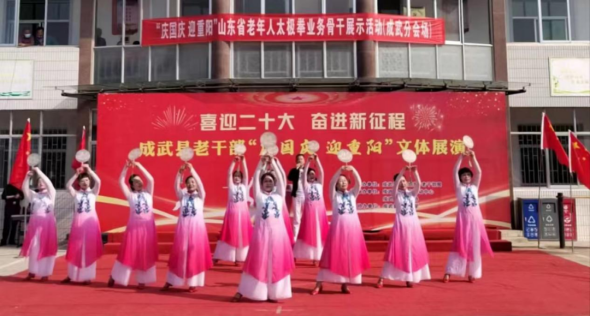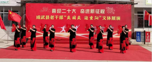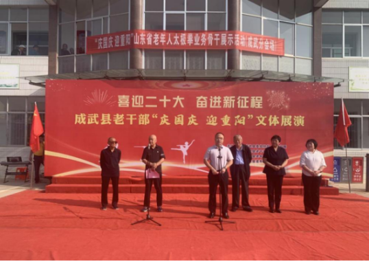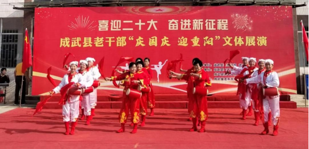 9月29日上午,“喜迎二十大 奋进新征程”菏泽成武县老干部“庆国庆 迎重阳”文体展演启动仪式在老干部活动中心隆重举行。县委常委、组织部部长、统战部部长,县政协党组副书记张景锋出席并致辞,县人大常委会副主任魏凤云,县委组织部四级调研员刘靖及老干部陈保魁、张传训、程秀岐等参加。 张景锋在致辞中向全县老年人致以节日的祝贺和诚挚的问候,并通报了今年以来成武县经济社会发展情况及老干部工作总体情况。他强调,成武县各项工作保持稳中有进、持续向好的发展态势,实现“开局即胜局”的目标,离不开老干部的理解和支持。县委、县政府将更加重视老年人工作,让广大老同志老有所学、老有所乐、老有所为,让更多老年人共享改革开放的成果,真正让老年人快乐生活、健康生活、幸福生活。 本次庆祝活动在腰鼓《红红火火大中华》中拉开帷幕,涵盖歌曲、舞蹈、走秀、戏曲、太极拳、空竹表演等多种艺术形式,共18个节目,观众热情高涨、掌声迭起。通过男女混声小合唱《最美逆行者》、女声独唱《乡愁》抒发了老干部对党和国家的深情祝福,通过9种太极拳打法展现了老年人老骥伏枥的昂扬斗志,成武县老干部将以更加饱满的精神状态迎接党的二十大胜利召开!