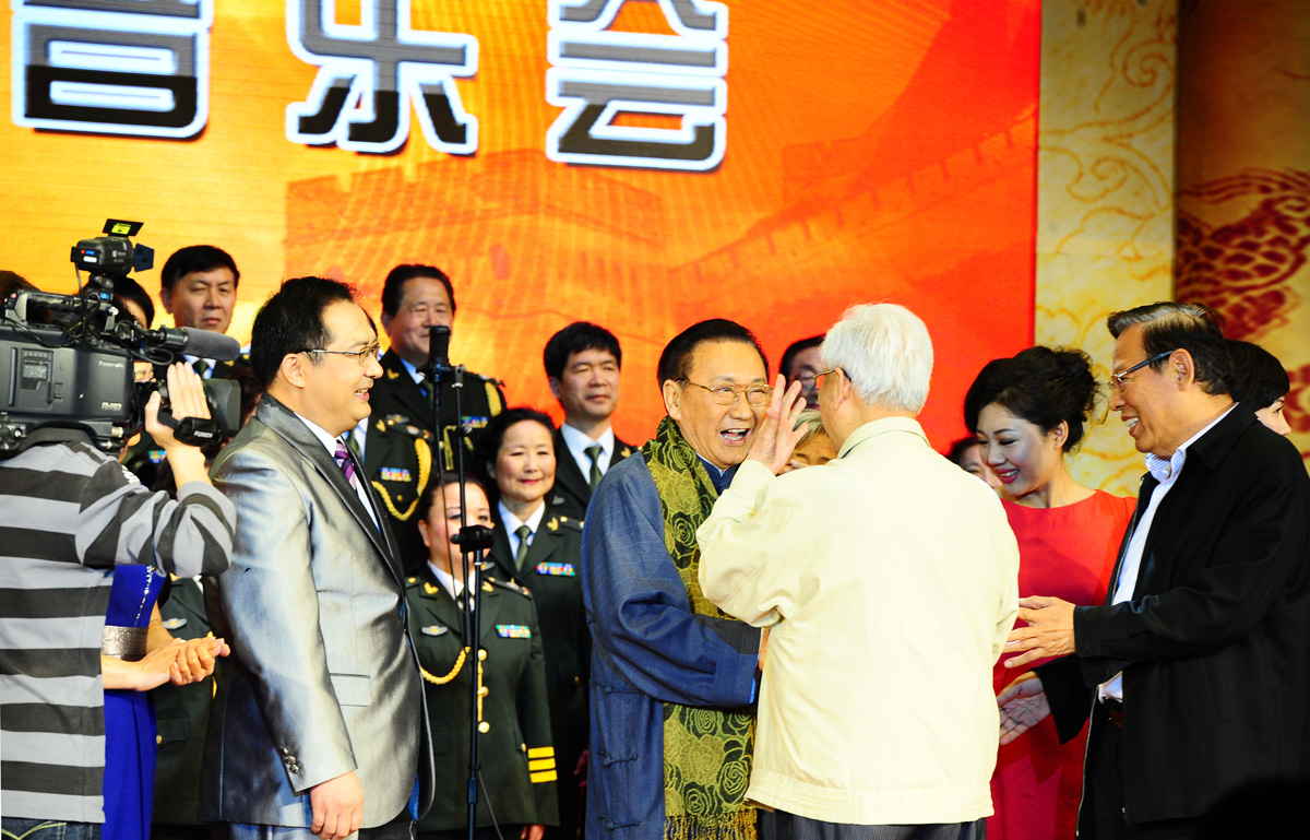赵志浩等老领导上台与参加演出的朗诵者们握手