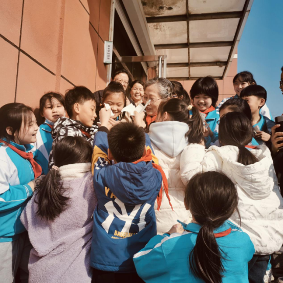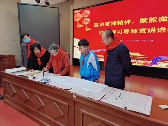 为进一步宣传弘扬雷锋精神,颂扬新时代美德新风,3月2日,济宁微山县委老干部局在县第二实验小学开展“宣讲雷锋精神,赋能微湖晚霞—红色传习导师宣讲进校园”活动,用实际行动传承和践行雷锋精神。 动情讲雷锋故事,种下红色种子。71岁的红色传习导师、老年大学书法班临时党支部书记郑浚博老师走进校园,拿着自己的手写稿向微山县第二实验小学的学生们讲起了雷锋故事和雷锋精神。“今年是毛泽东等老一辈革命家为雷锋同志题词60周年,‘学习雷锋好榜样’是我温暖的成长记忆。”“习近平总书记指示我们,要让雷锋精神在我们青少年中蔚然成风,让雷锋精神在我们这个新时代绽放更加璀璨的光芒。”当讲到雷锋牺牲时,她流下眼泪,深感痛惜,在场的孩子们和老师们也都为之动容。 活动现场,郑老师讲述了“雷锋出差一千里,好事做了一火车”的故事,她教导学生们要像雷锋一样勤俭节约,争做新时代的好少年。郑老师说道:“小时候的我们,要做完家务再去上学,一年吃一次肉是常有的事情,那个时候的雷锋精神就在激励着我,老师常常教导雷锋吃苦耐劳、无私奉献的精神要牢记心间。现今孩子们,生活条件异常幸福,也一定不能忘本,不能忘记乐于助人、无私奉献。我们要好好听习近平总书记的话,将雷锋精神发扬光大!”现场热烈的掌声持续不断,学生们一双双亮晶晶的眼睛投向了郑奶奶,一位虽然头发花白,但精神矍铄的老党员、老干部在孩子们的心里种下了红色的种子。宣讲会上,郑浚博老师还为同学们讲述了中华传统美德故事。 翰墨书写精神,厚植中国文化。郑老师结合自己亲身经历与孩子们分享雷锋故事,雷锋的精神已然深深烙在了孩子们的心中。宣讲会后,郑老师拿起毛笔,柔中带刚地书写下“雷锋精神永放光芒”等励志警句。行列整齐、规矩和谐的篆书,给孩子们展示了中华民族优秀的书法文化。郑老师同孩子们拿着书法作品,齐声宣读“雷锋精神永放光芒”,洪亮的声音,铿锵有力地响彻整个会场。孩子们说:“郑奶奶,您讲的雷锋精神我真爱听,我脑子里会出现一幅幅雷锋叔叔的图画。”“郑奶奶,您的书法我还没有学过,但是好美,下次可以再来教教我们吗?”郑老师开心地答应着:“记住郑奶奶的话,好好珍惜今天的幸福生活,要向雷锋叔叔学习!”放下毛笔,郑老师怕耽误孩子们上课,就匆匆离开了。可谁曾想,门外围满了拿着作业本找着郑浚博奶奶要签名的“追星族”们。 深耕传习基地,永续红色基因。习近平总书记指示:“新征程上,要深刻把握雷锋精神的时代内涵,更好发挥党员、干部模范带头作用,加强志愿服务保障和支持,不断发展壮大学雷锋志愿服务队伍,让学雷锋在人民群众特别是青少年中蔚然成风,让学雷锋活动融入日常、化作经常,让雷锋精神在新时代绽放更加璀璨的光芒,为全面建设社会主义现代化国家、全面推进中华民族伟大复兴凝聚强大力量。”离退休干部服务中心主任殷玉华向孩子们介绍了微山县离退休干部“红色传习”基地的有关情况,“红色传习基地就是让爷爷奶奶能有更多的平台,更多的机会为学生们、群众讲红色故事、讲革命历史、讲新时代国家新发展变化。让同学们能够传承红色基因,弘扬红色精神。2023年,红色传习基地将致力继续为青少年传播红色精神,厚植爱国主义,助力青少年健康向上发展。”