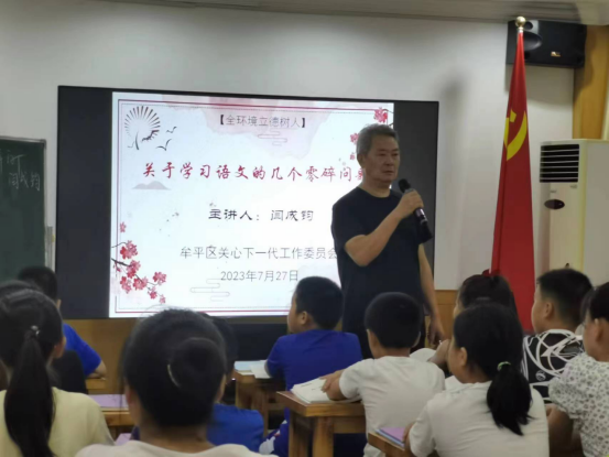 为培养中小学生的文学兴趣,养成养好的阅读习惯,7月27日,由烟台牟平区关心下一代工作委员会、区文联联合举办的暑期文学公益讲座在区关工委青少年读书堂举行。来自牟平区各中小学校的70多名学生和部分家长参与并聆听了讲座。 本次讲座首先由牟平区作家协会理事、原牟平区教研室高中语文教研员,有着30多年一线教学经验的闫成钧老师分享了《关于学习语文的几个零碎问题》。闫老师从自身出发,结合多年的教学教研经验,深入浅出地为同学们讲解了如何学好语文这门影响并一直伴随我们一生的学问。首先家长要帮助培养学生学习语文的兴趣,而不能单靠教师的引导。其次,学不好语文,不仅不会说话,也不会听话。语文可以帮我们更好更及时地了解周围人想要表达的意思,博大精深的中华文化需要我们后代传承并发扬光大。闫老师的讲解娓娓道来,生动深奥,饱含期待,同学们不自觉带入了自己的日常学习,深受启发! 接下来,牟平区作家协会副主席赵阿芳分享了《追随古诗人足迹,且行且吟——带着古诗去旅游》。古诗词是中华传统文化的瑰宝,诵读古诗文对于提升人的境界,丰富人的内涵,开阔人的胸襟,净化人的灵魂,启迪人的智慧有着极其重要的作用。品诗词生暗香,忆先贤共清欢,阿芳老师的讲解从我们的故土山东出发跨越九个省份,讲述了各个地区重要诗词大家的作品及作品产生的地理坐标和历史背景,同学们不仅能了解古诗词,更能深入了解古诗词背后的故事,方便加强对诗词的记忆和理解。跟着诗词去旅行,这是一个美好的愿景,更是一段浪漫的行程!阿芳老师的讲解细致周到,引人入胜,风趣幽默,带给我们一副画面感极强的饕餮盛宴。愿我们都有这样的机会不再单纯是追求美景、美食,而是追随美丽的古诗词,来一场充满诗情画意的旅行! 讲座持续了2个小时,在热烈的掌声中落幕,同学们感触很深,意犹未尽,久久不能从语文和古诗词带给我们的震撼中回眸。四年级的小学生彤彤表示,本次讲座解锁了我对写作和古诗词学习的新方式,激发了对写作和古诗词学习的强烈愿望,正所谓阿芳老师所说,我们今天记住的诗词就是我以后每一天都能记住的,我爱生活,我爱古诗词。据悉,8月份,暑期公益讲座将继续举行第2期。 |