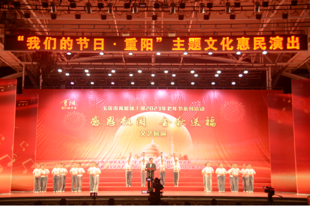 近日,云南玉溪市离退休干部2023年“感恩祖国·金秋送福”老年节文艺展演在聂耳文化广场精彩上演。这场在群众身边呈现的“文艺盛宴”形式多样、内涵丰富,营造出歌颂祖国昌盛、共传敬老美德、欢度喜乐重阳的浓厚氛围。 市委组织部副部长、老干部局局长鲁志明出席活动并致辞,向离退休干部和广大老年朋友送上老年节的美好祝愿。 开场舞《中华孝道》拉开了活动序幕。快板《党颂》别开生面,用节奏明快、朗朗上口的快板细数波澜壮阔的百年党史;大合唱《祖国不会忘记你》、歌舞《扇花飞扬颂祖国》唱响了国家富强、民族振兴、人民幸福的主旋律和对祖国的无限热爱;歌舞《玉溪花灯崴起来》《小河淌水》《攀枝花开》、大合唱《向往云南》民族特色浓郁,感染力强,老同志们用优美的舞姿、高亢的歌声表达了对家乡的热爱;京剧《智斗》里抑扬顿挫的唱腔博得现场观众阵阵掌声和喝彩;花式柔力球《万物有灵》把人与自然和谐共生的生态理念在圆灵轻活、闪展腾挪的表演中展现得淋漓尽致。活动在《爱我中华》欢快热烈的旋律中圆满结束。 活动展演由老干部聂耳合唱团、市直机关老体协和市老干部活动中心选送的15个节目组成。来自各社团、协会的325名参演老同志用歌声和舞姿展示了积极健康的阳光心态和老有所学、老有所为的价值追求,展现了新时代老年人的活力和风采。
