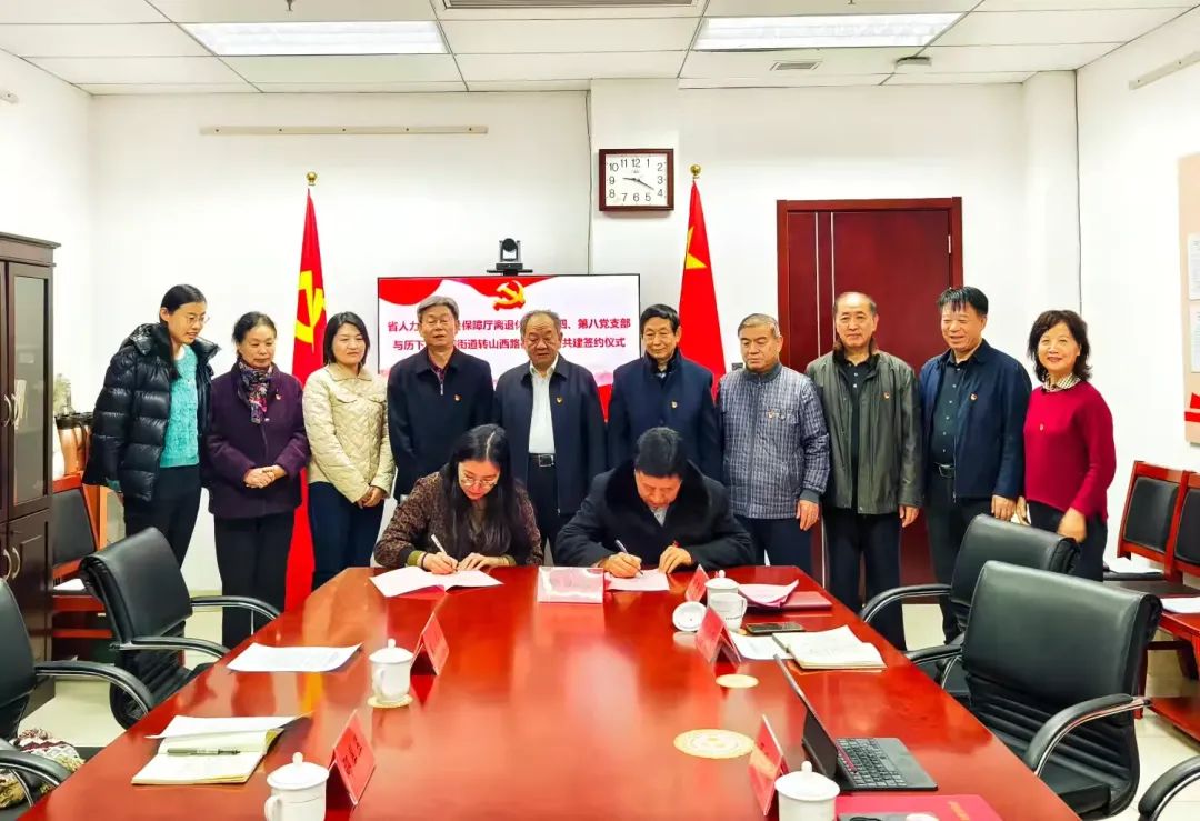 为进一步加强基层党组织建设,充分发挥离退休干部作用,推动社区治理、党群共建与老干部作用发挥深度融合,12月19日上午,山东省人社厅机关离退休干部第四、第八党支部与济南市历下区龙洞街道办事处转山西路社区党委,在省人社厅机关离退休干部党建活动阵地共同签署了共建协议。省人社厅离退休干部处处长崔西勇主持。