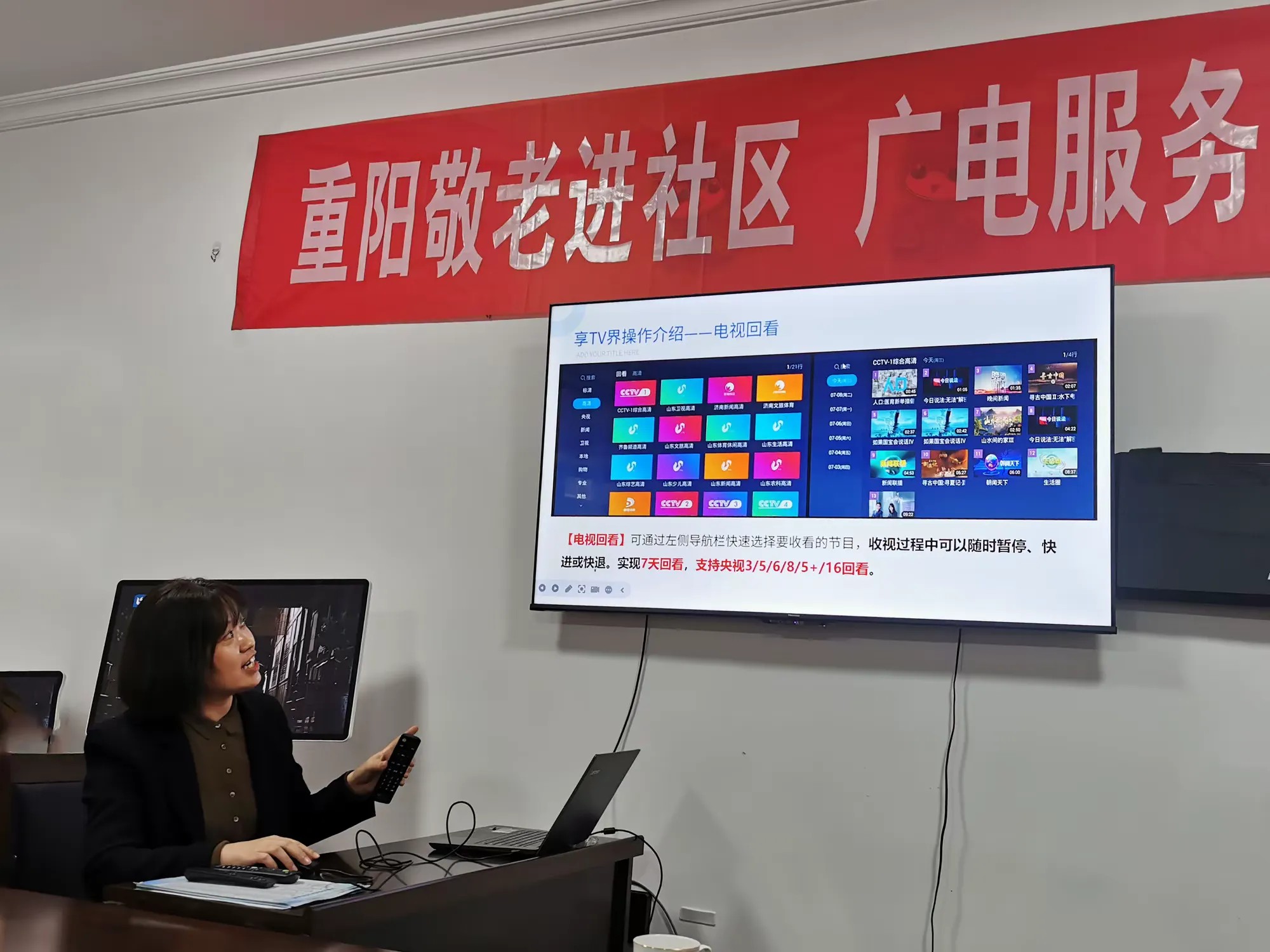 今年10月,是全国第十六个“敬老月;10月29日(农历九月九日)重阳节,是全国第十三个“老年节”。为认真落实习近平总书记关于老干部工作和老龄工作的重要指示精神,切实帮助离退休老同志跨越“数字鸿沟”、乐享智慧生活。2025年10月31日下午,山东省直机关工委离退休干部党总支、工委办公室联合省广播电视局机关党委,在工委老干部活动室(本色家园),共同举办“广电惠民生 轻松看电视”重阳敬老志愿服务进社区活动。以一场别开生面的敬老节主题活动,为老同志们送上了一份份沉甸甸的关爱与祝福。 10月31日下午,工委老干部活动室(本色家园)重阳敬老活动现场。 省直机关工委离退休干部党总支书记赵修东主持活动并致辞。 这次重阳敬老活动,省直机关工委离退休干部党总支和工委办公室精心策划部署、广泛宣传发动,除工委老干部及其家属踊跃参加外,工委离退休干部党总支还邀请了省委办公厅、省委党校和省妇联的部分老同志,共享重阳节的快乐。省直机关工委离退休干部党总支书记赵修东向参加活动的全体离退休老同志致以节日的诚挚问候和美好祝福,衷心祝愿所有老同志身体健康、生活快乐、家庭幸福;并向省广播电视局机关党委和“广电惠民生 轻松看电视”重阳敬老志愿服务者们表示衷心的感谢! 省广播电视局机关党委王桂娟处长介绍了广播电视便民服务有关政策。 这次重阳敬老活动,重点围绕老同志们在电视收看、遥控器使用等方面经常遇到的问题,提供现场指导与便民服务,重在帮助老同志们切实解决在电视收看中遇到的实际困难,提升其居家文化养老生活品质,更好地满足大家的精神文化需求。省广播电视局机关党委王桂娟处长和中国广电山东网络有限公司济南市市中区分公司市场部主任张爱芳分别介绍了广播电视便民服务政策,解答收视问题;现场演示和指导智能遥控器、便捷视听设备的使用;山东传媒职业学院书匀老师(原山东广播电视台著名主持人)作了生动感人的防范通信网络诈骗宣传:增强老同志识骗、防骗意识,守护财产安全;与此同步提供了血压测量、磨菜刀等便民暖心服务。 市中区分公司市场部主任张爱芳解答收视问题;现场演示和指导智能遥控器、便捷视听设备的使用。 书匀老师作了精彩的防范通信网络诈骗宣传。 参加活动的领导与志愿服务者合影留念。 “爱满重阳,情满桑榆”。这次工委举办的重阳敬老志愿服务活动,把志愿者们请到家里为老同志们排忧解难,是一次非常务实的敬老、爱老、助老的新举措。老同志们学习和了解了一些科学正确地看电视的知识和技能,特别是对“时移”“回看”等一些常用功能,在此之前,很多老同志都不知道,通过这次活动很多老同志受益匪浅。不仅为离退休老同志们解决了日常看电视的一些难题,让老同志们拉近了与数字化新时代的距离,而且感受到了党和政府的温暖与关怀,进一步增强了党组织的凝聚力与向心力;也为老同志们提供了一个欢聚交流、乐享生活难得的机会。当天下午,工委老干部活动室(本色家园)活动现场人头攒动、暖意浓浓,洋溢着温馨祥和的气氛。老同志们欢聚一堂,在欢声笑语中度过了一个属于自己的重阳佳节,大家非常感谢组织的关怀与温暖,纷纷表示充分利用广播电视信息化平台,努力学习科学文化知识,做到老有所学、老有所乐,积极面对未来,乐享智慧生活。